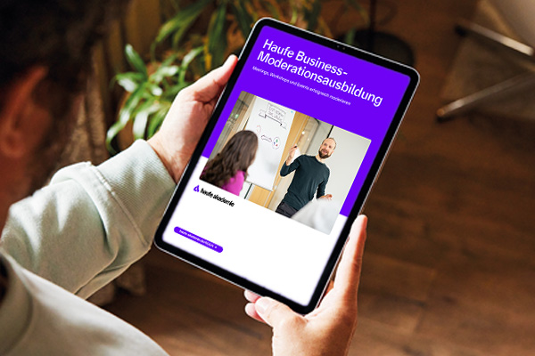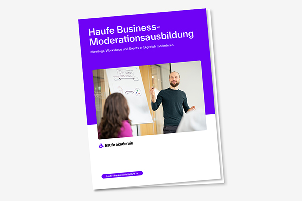 Das Infopaket zur "Haufe Business-Moderationsausbildung" enthält umfassende Infos zu den Inhalten, den Methoden, dem Ablauf, den Trainerinnen und der Prüfung. Zudem kannst du lesen, was ehemalige Teilnehmende zur Ausbildung sagen.